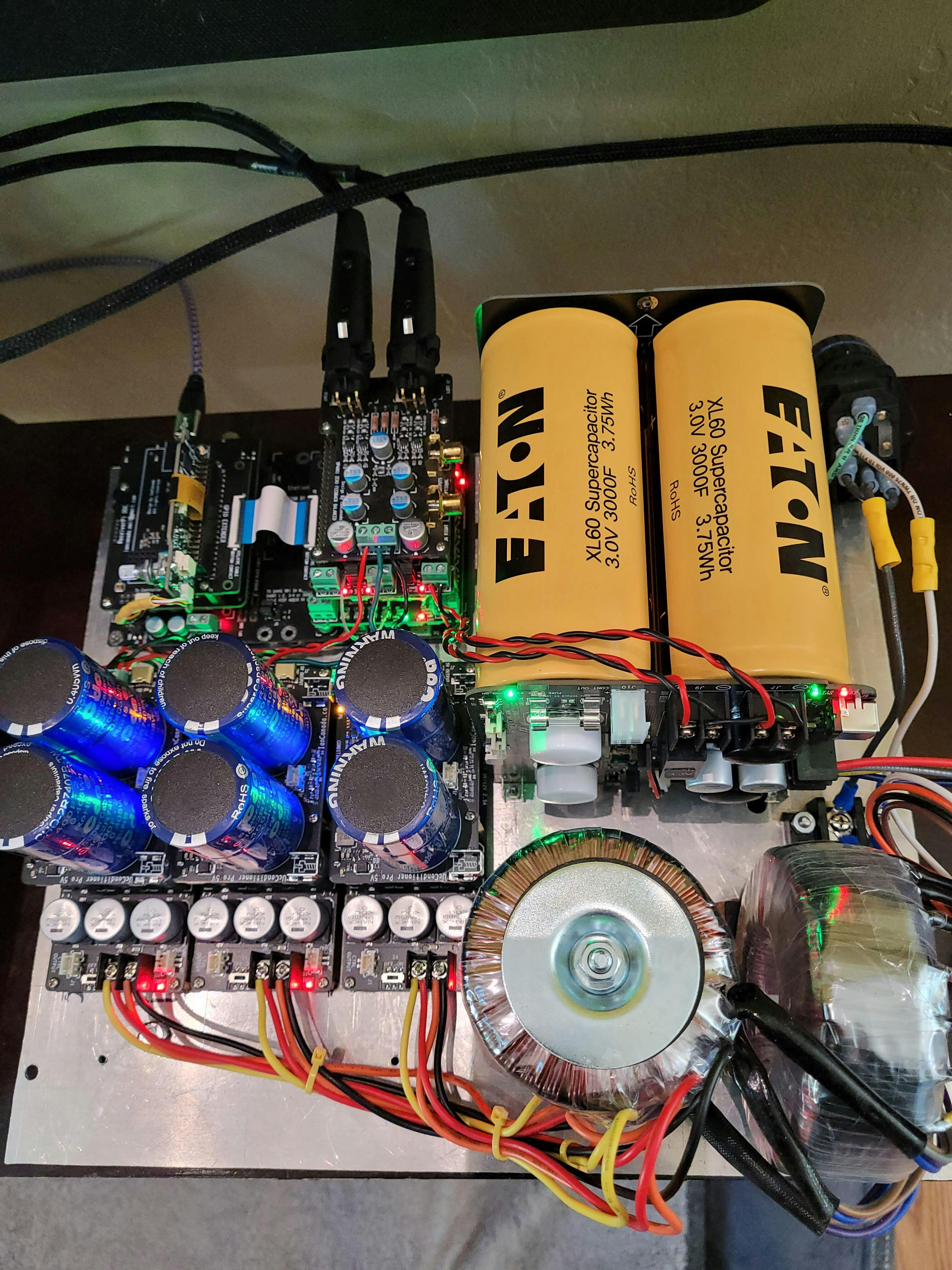 Got this kit to replace a UcConditioner/LinearPi P/S for the 3.3V inputs on the FifiPi Q7 and Dual Mono II DAC hats for Ian's flagship DAC kit. The board has 2 outputs (same voltage) and chassis mounting brackets so it is a cleaner solution than using 2 UcPure/Balancer kits. That said, a quad pack of ultracapacitors is huge. I had to modify my case to accomodate the 5.25" X 5" X 7" mass with Eaton 3000F ultracapacitors added.